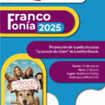 En el marco de la Francofonía se presentó en el Festival de cine francófono, la película suiza Le procès du chien (El proceso del Perro) de la directora suiza Laetitia Dosch, una divertida comedia con premios en los Festivales de Cannes y Angouleme 2025, del 19 al 21 de marzo 2025 en Manizales, Barranquilla, Tunja y Cali en asocio con las Alianzas Francesas de estas ciudades.